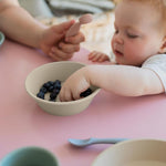 BIBS Dinner Plate Set consists of a plate and a bowl. The bowl comes with a lid. The Dinner Plate Set promotes the social benefits of eating together with small children.