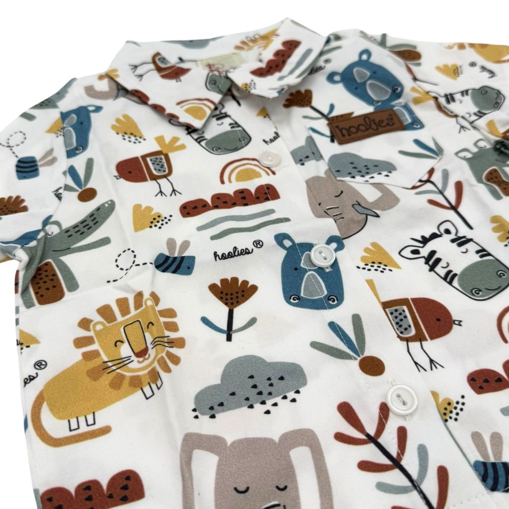The Hoolies Safari Button-Up Shirt brings playful character and classic style together in one easy-wear piece. Crafted from soft woven cotton, this shirt is lightweight, breathable, and perfect for sunny days filled with exploration and adventure.