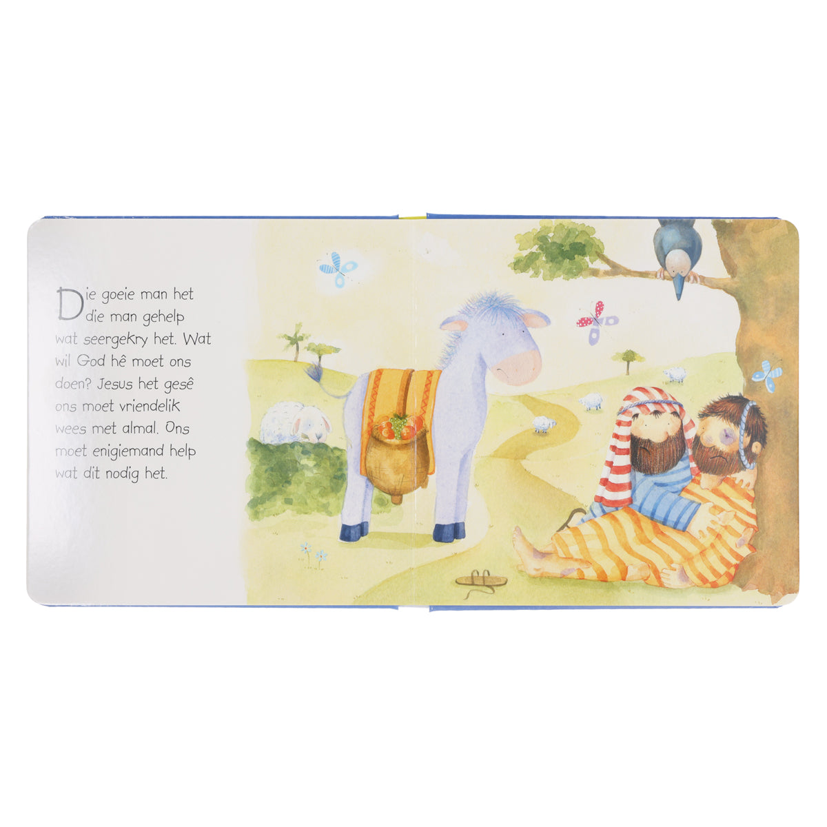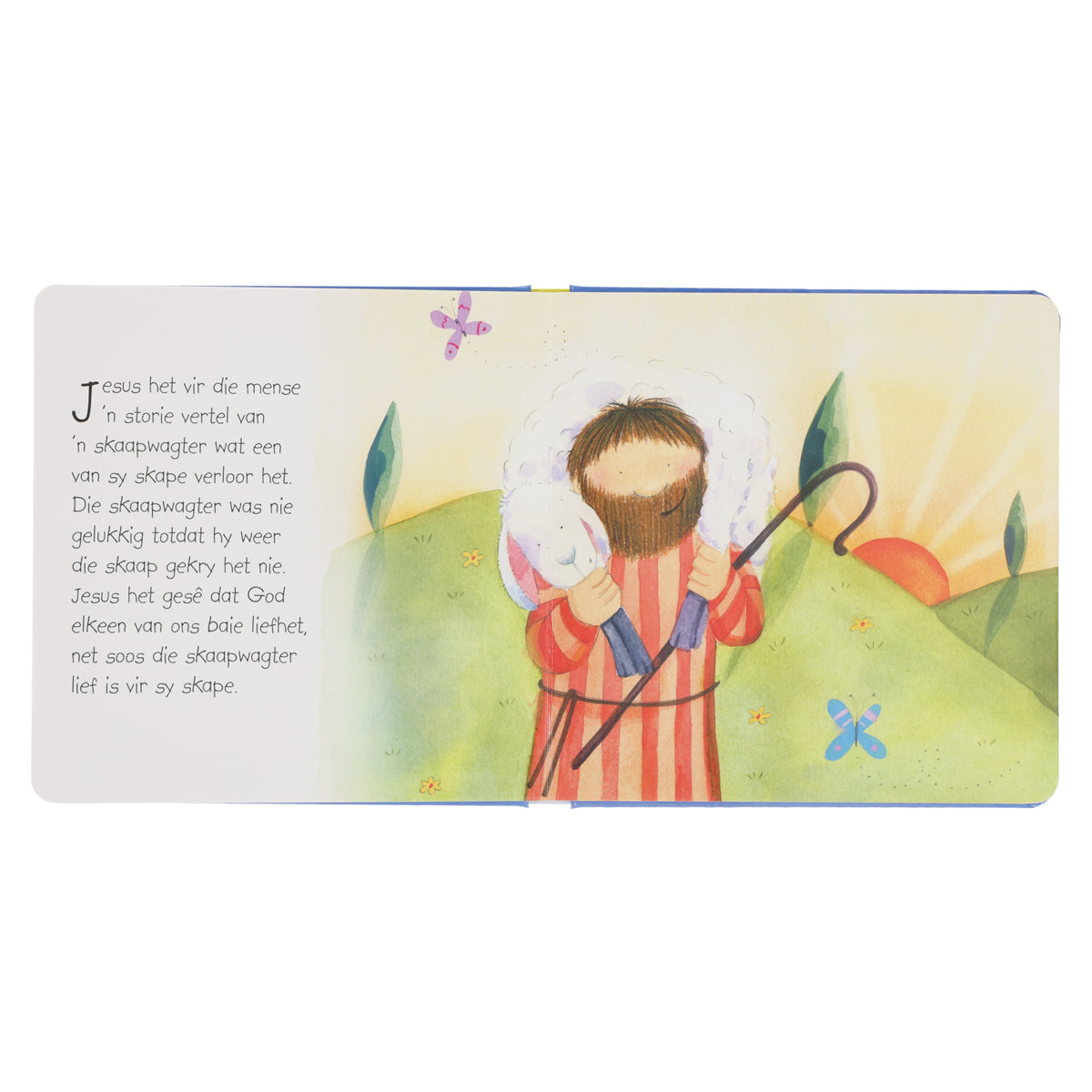 Eerste Bybel vir kleingoed bevat van die bekendste Bybelverhale, pragtig geillustreer, wat God bladsy vir bladsy aan kleingoed bekend sal stel. Dit sal kleingoed help om die eerste treë in hul geloof te neem en om die God te leer ken wat hulle liefhet! Kleingoed sal dit geniet om na die mense en diere in die kleurvolle kunswerk op elke bladsy te kyk, wat dit die perfekte keuse maak as jou baba se eerste Bybel!