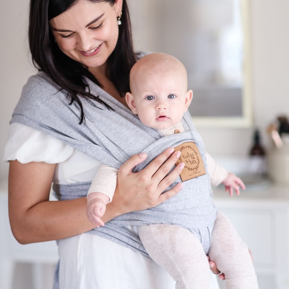 The Tulips & Tea Baby Wrap Carrier is used to wear your baby against your body, from newborn to 10kg. Baby wearing has numerous benefits for both baby and mommy, or even dad! You can wear your baby in five different ways, adjusting your style, depending on your little one’s age and weight. Wrapping your baby to your body happens in three easy steps. Having a happy and calm baby, whilst having your hands free, saves parents daily!