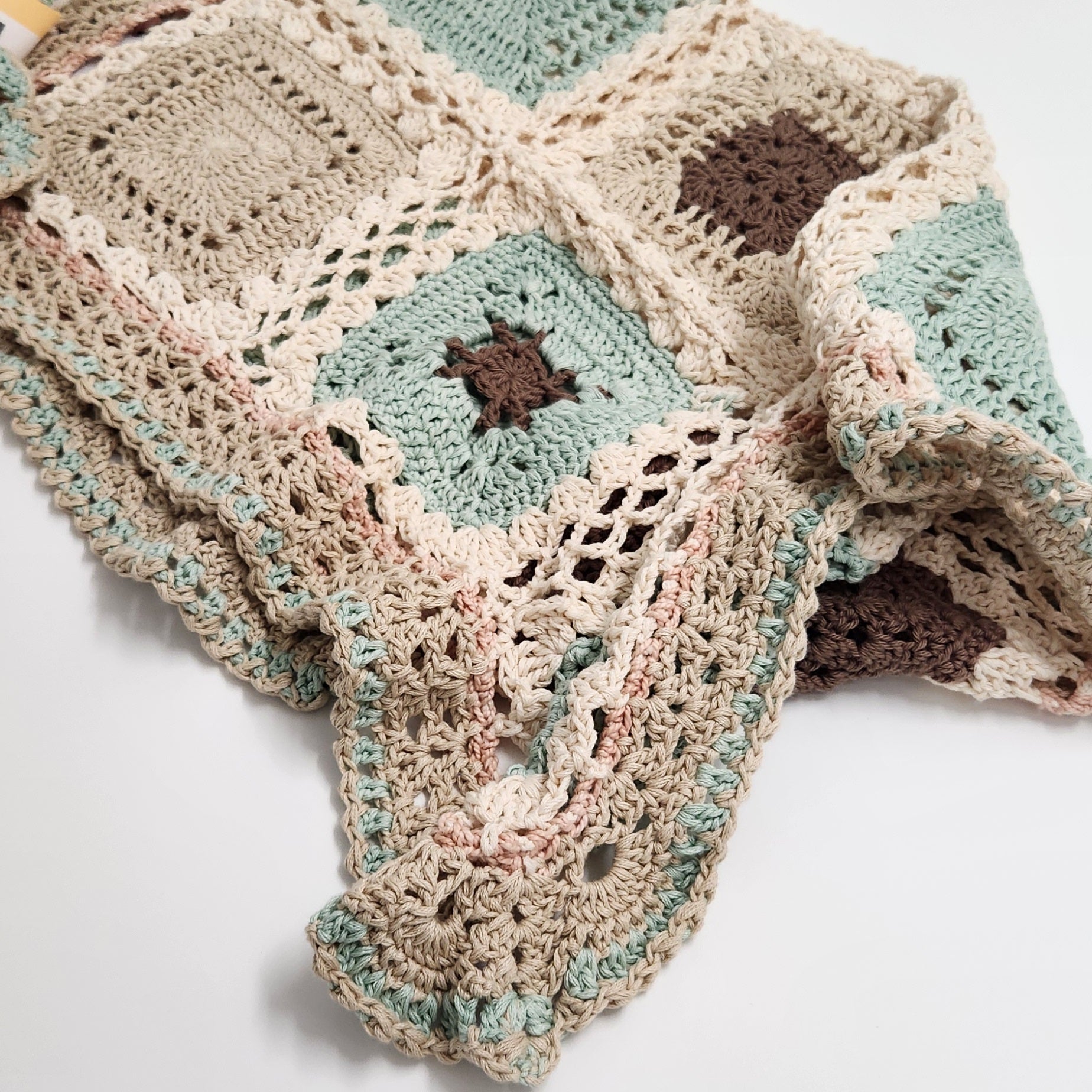Blue, White, Brown & Beige Crocheted Blanket