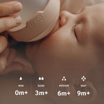 The skin-soft ring is crafted from exceptionally soft silicone, mimicking the texture of a mother’s breast, while its matte surface enhances grip and comfort during feeding.
