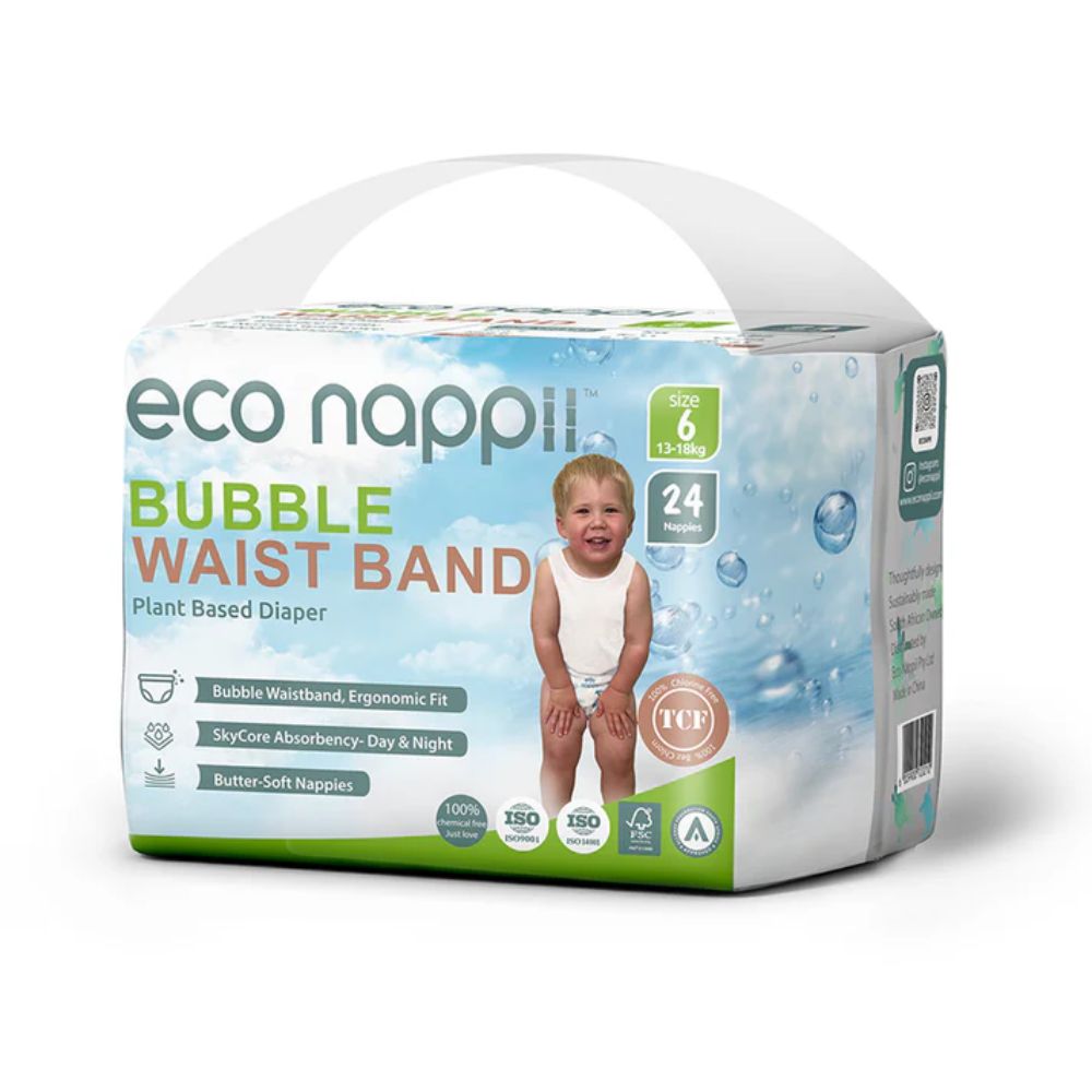 Eco Nappii nappies (sizes 0 – 5) use bamboo pulp for most of a baby’s diapering lifetime, covering the phase where most nappy waste is produced.