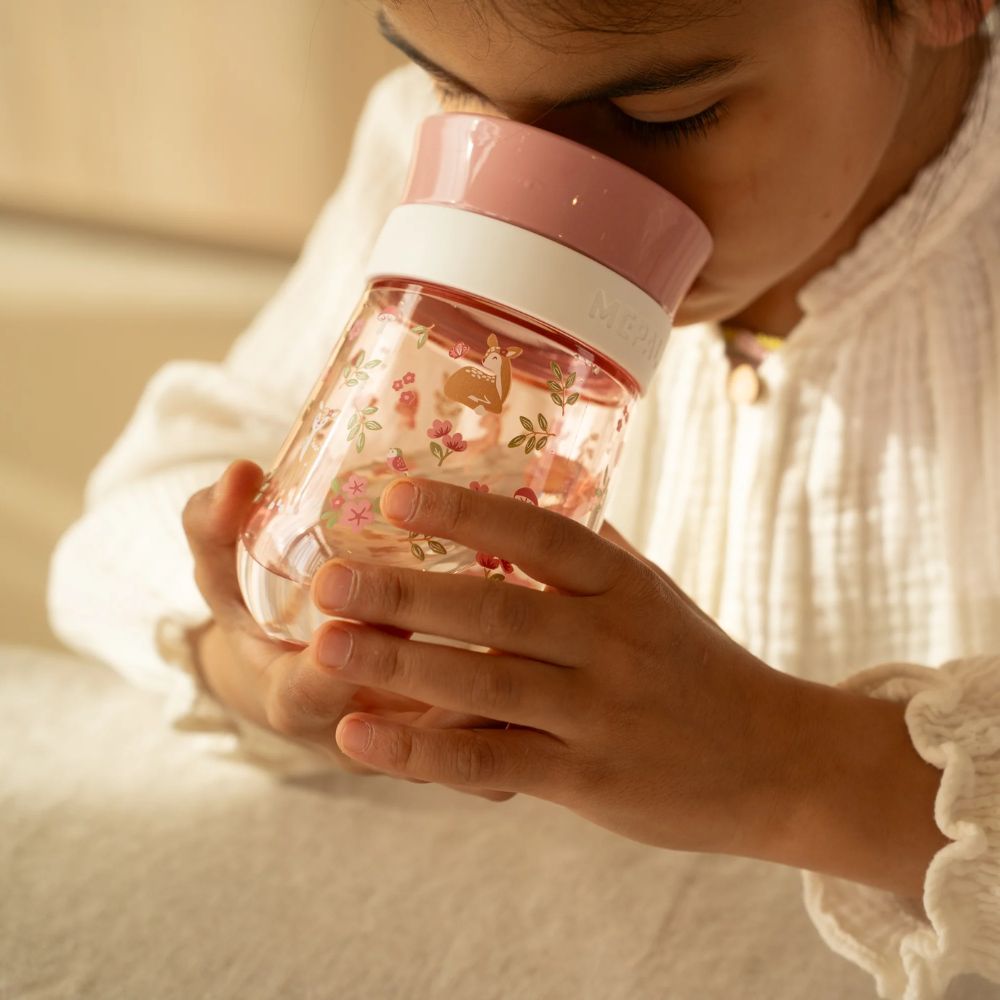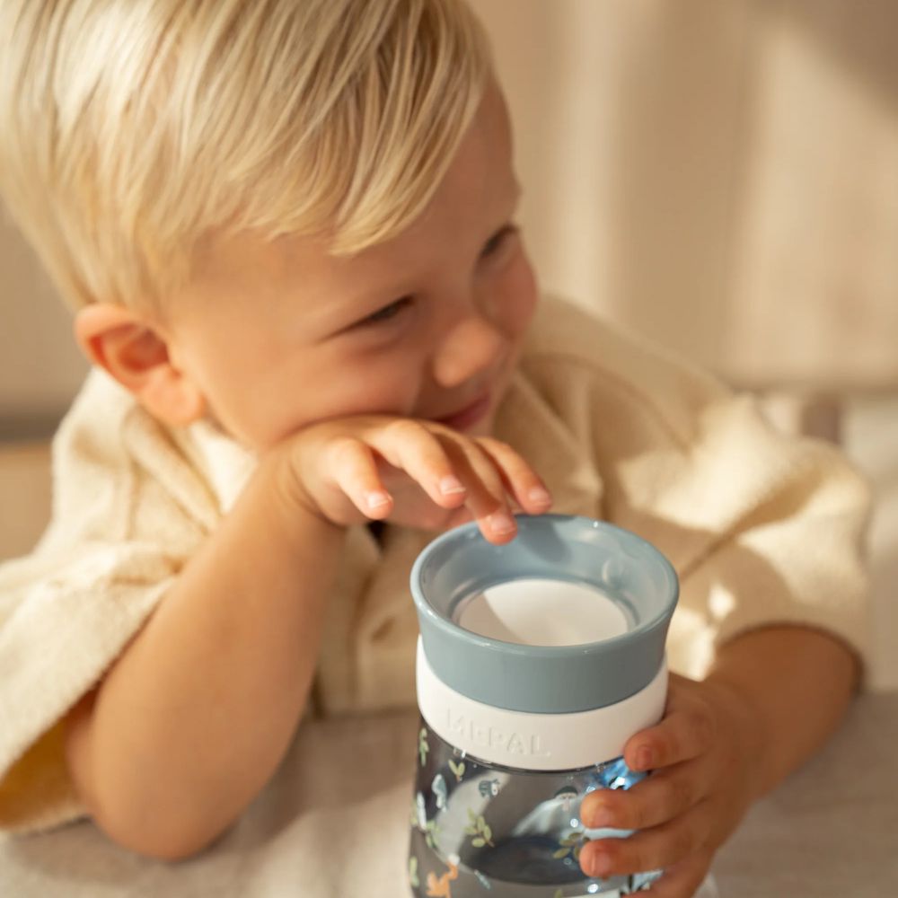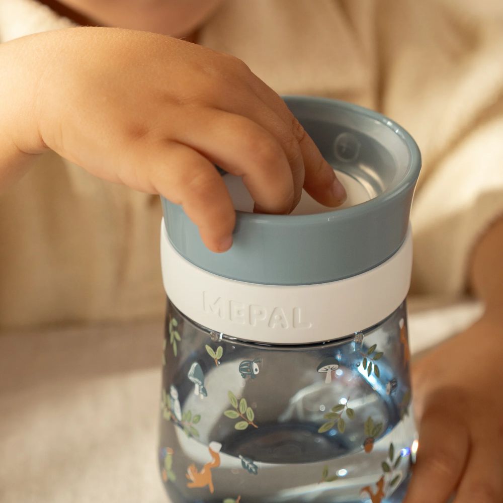 The 300 ml Mepal Mio 360° trainer cup is specially designed to help children learn to drink independently. The design allows drinking from any angle, while the leakproof valve prevents spills. Perfect for everyday use, at home or on the go. Made of sturdy and durable material, suitable for the dishwasher. The magical design makes every drinking moment enchanting.