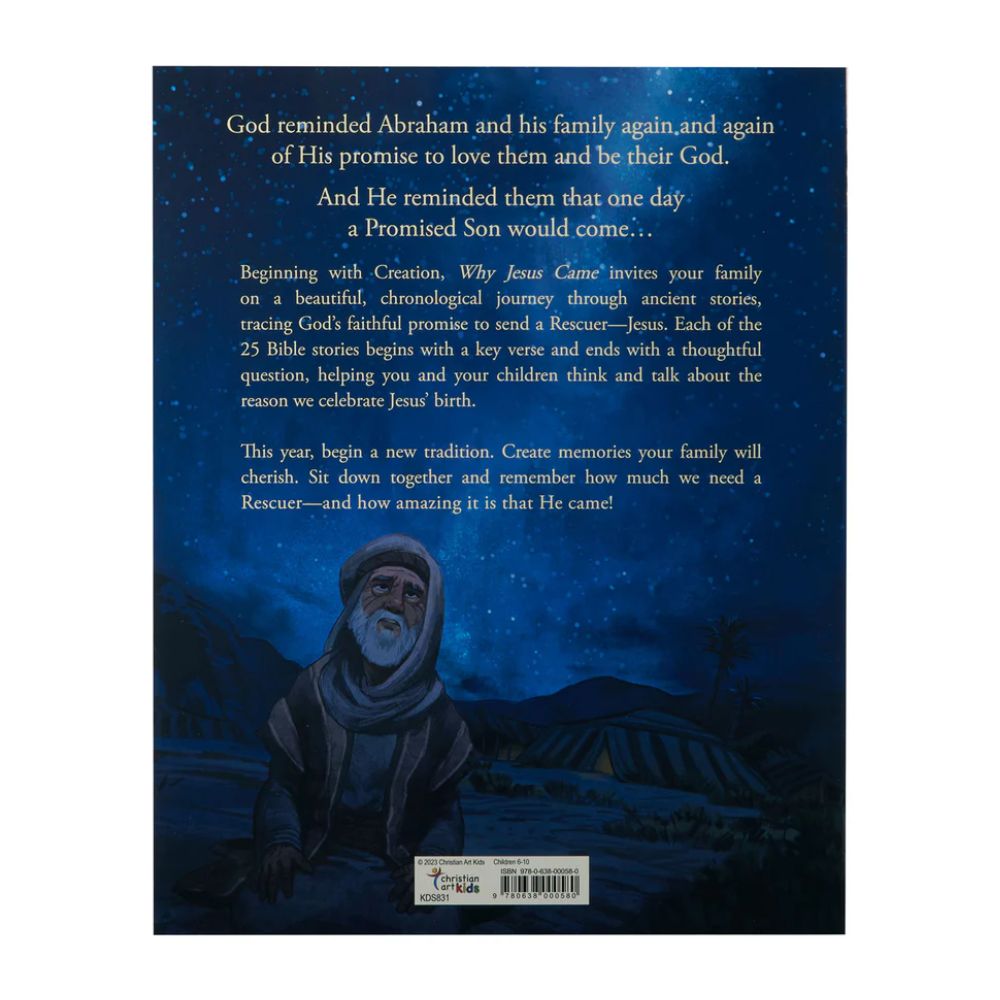 Beginning with Creation, Why Jesus Came: 25 Bible Stories Showing Why God Sent His Son invites your family on a beautiful, chronological journey through ancient stories, tracing God’s faithful promise to send a Rescuer—Jesus. Each of the 25 Bible stories begins with a key verse and ends with a thoughtful question, helping you and your children, especially 6–10-year-olds, think and talk about the reason we celebrate Jesus’ birth.