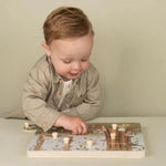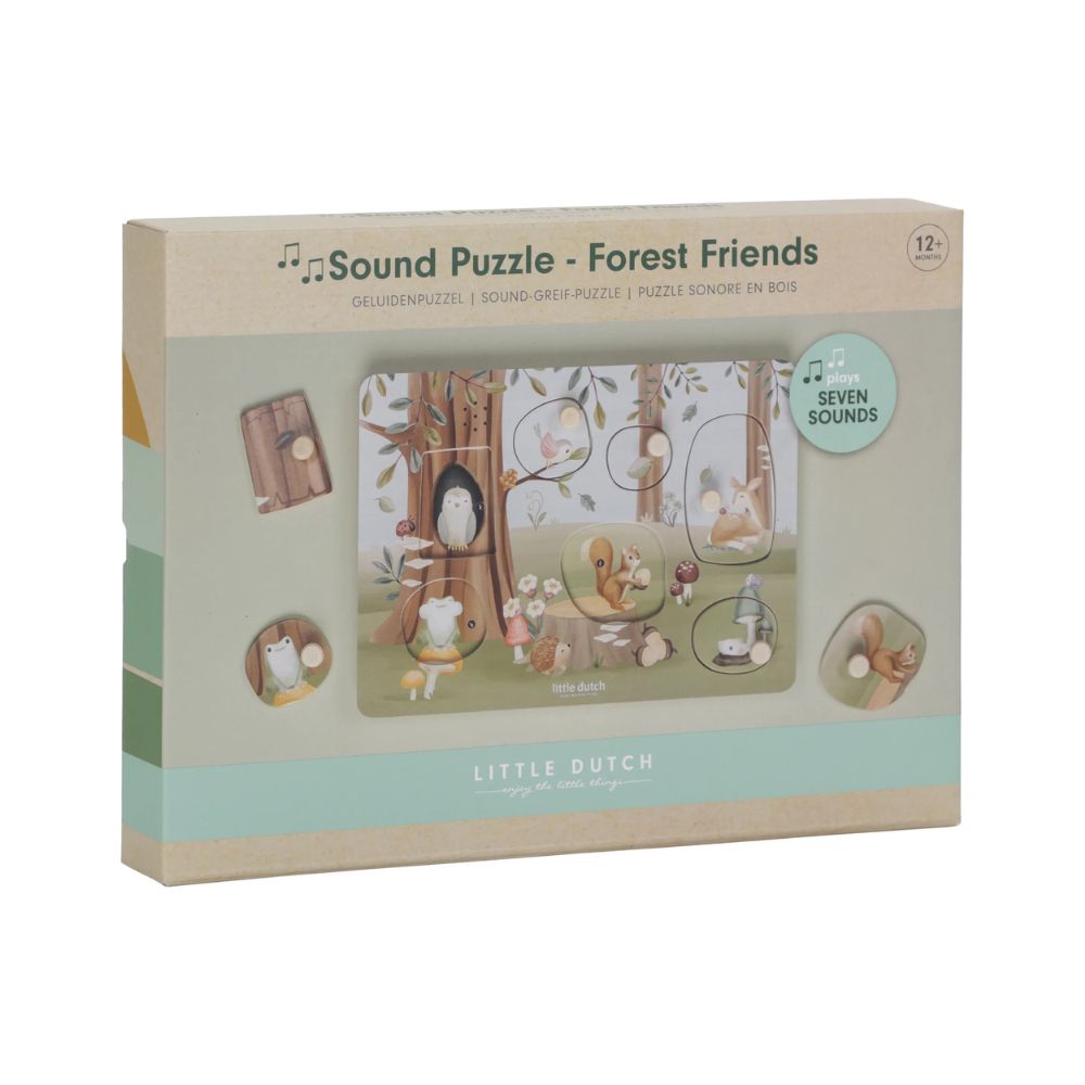 Meet all the creatures that live in the forest and recognize their shapes and unique sounds with this fun puzzle. When lift a piece, you will hear a matching sound.
