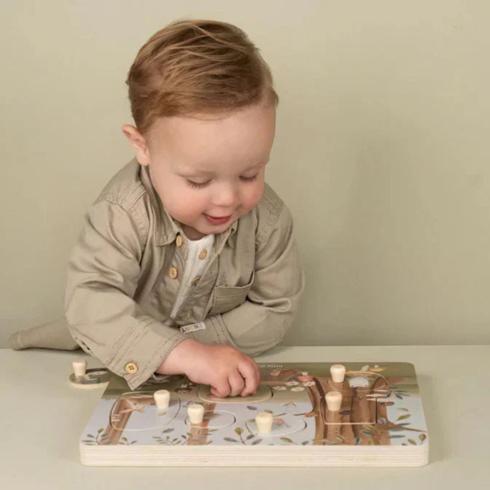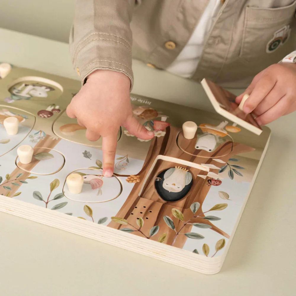 This puzzle with 7 pieces of animals, leaves, mushrooms, promotes hand-eye coordination and stimulates your child's vocabulary. The puzzle contains light-activated sensors - use in bright light for the best results. Make sure the switch is ON to activate the sound function.