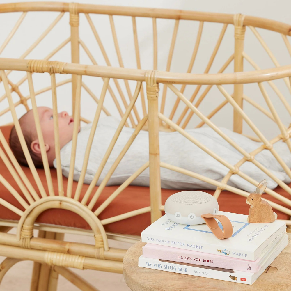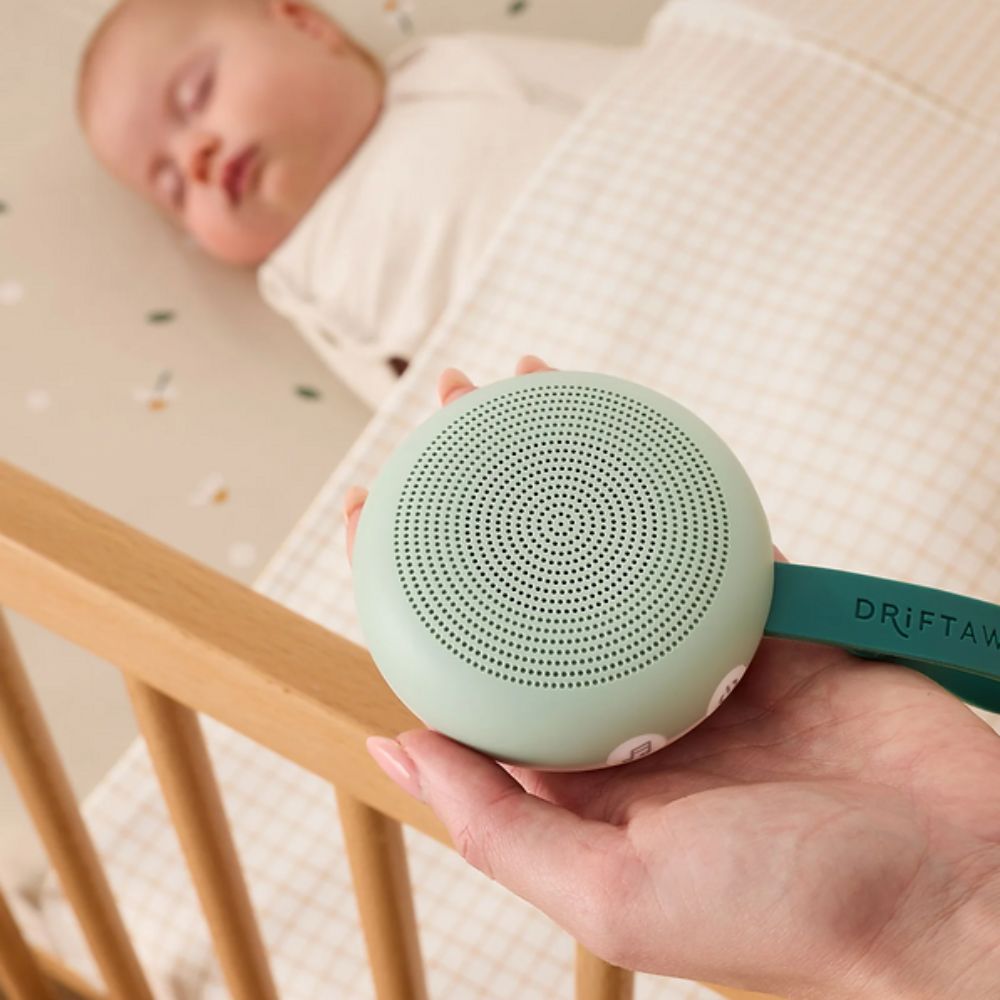 The Drift Away Portable White Noise machine features seven clean and clear sleep sounds, designed to promote deep, restorative sleep for babies and adults by masking disruptive noises in the sleep environment. Incorporate the Drift Away sound machine into your sleep routine by playing one of the sounds at bedtime to help you and/or your baby be soothed and calmed to sleep, and build healthy sleep cues and habits.