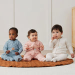 The Sleep Onesie is made from and filled with GOTS-certified organic cotton that is non-toxic and gentle on irritable skin. The strethcy material allows your little one to move freely and stay comfortable for sleep. The 3-way zip confirguration is helpful for overnight nappy changes or toilet trips, and foot cuffs add extra warmth for little toes.