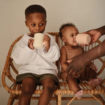 A simple and beautiful sippy cup, perfect for little hands to hold. As baby begins the transition from a baby bottle to a cup, a sippy cup will help develop fine motor skills and independent eating habits. The cup is made from 100% food-grade silicone, and it is soothing for toddler gums and teeth to latch onto while drinking.