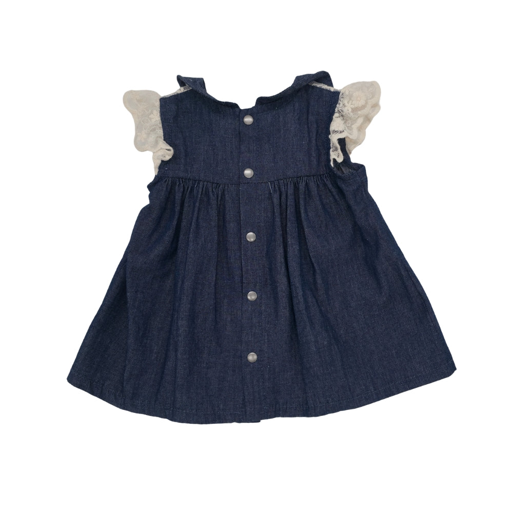 Meerkat Denim Dress with Embroidery Short Sleeve