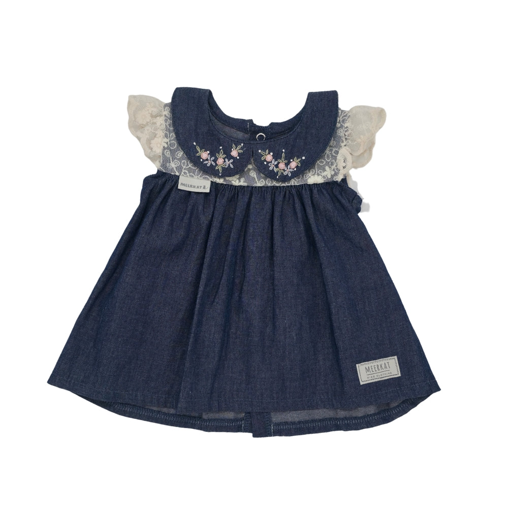 Meerkat Denim Dress with Embroidery Short Sleeve