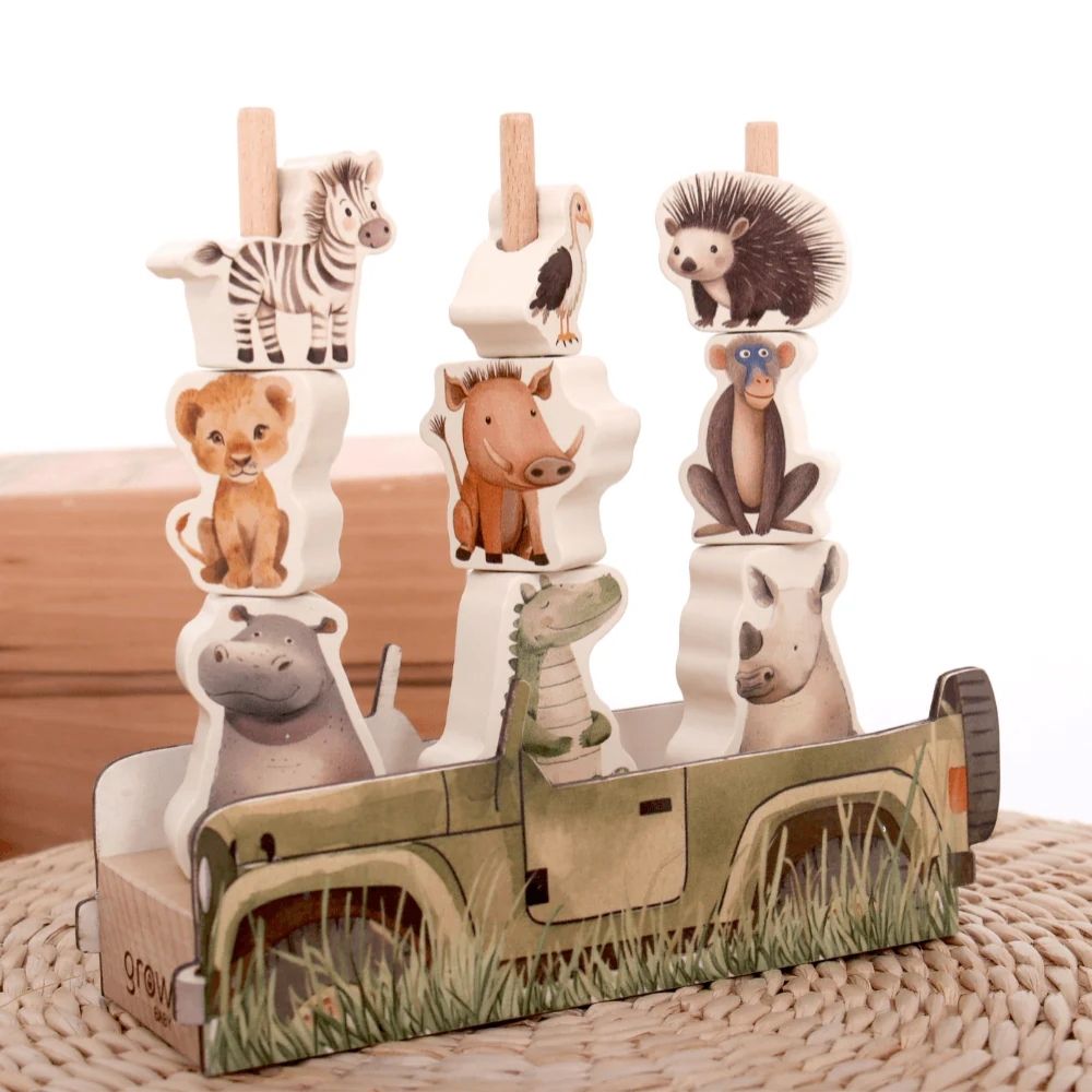 • Fine motor skills: Enhances fine motor skills through grasping, manipulating, and stacking the animals.