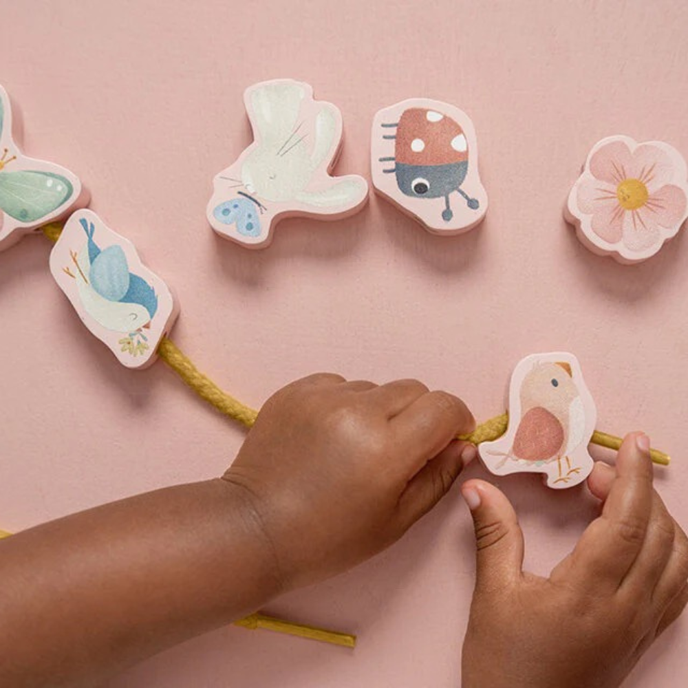 Use your imagination to tell a story by lacing these lovely beads one by one. This set of lacing beads comes with one string tipped by aglets for easy lacing and 12 wooden beads with the beautiful illustrations of the LD collection.