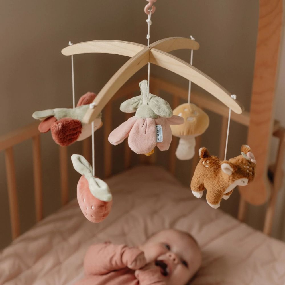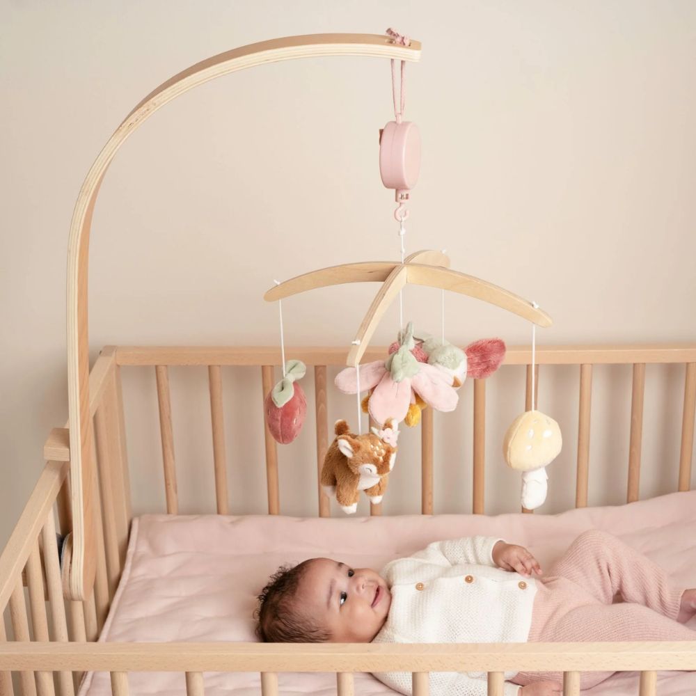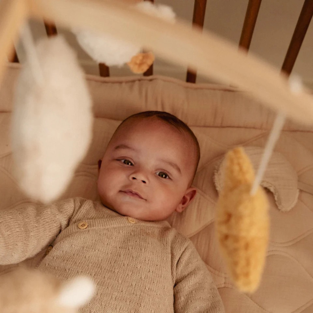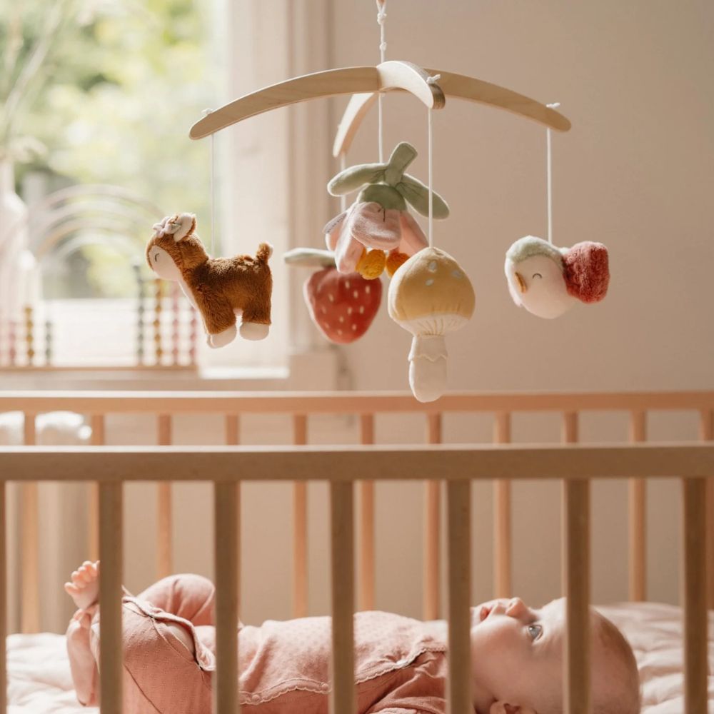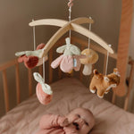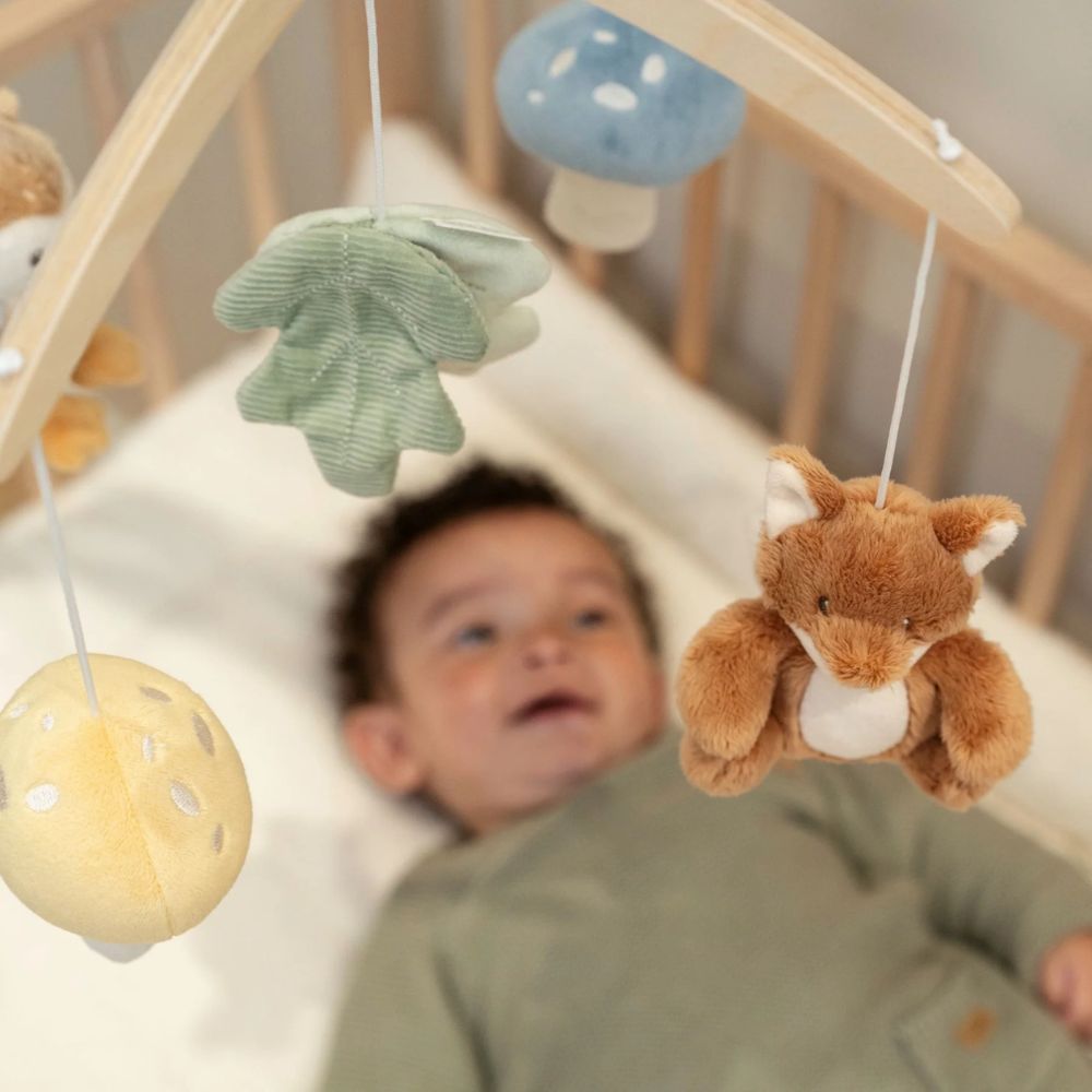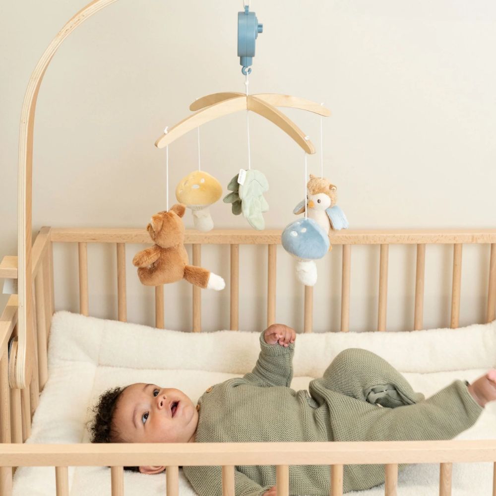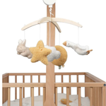 A soothing spectacle for dreamy little ones. The Wooden Music Mobile gently rotates and plays a calming melody that aids in falling asleep. The subtle colors and cute figures capture attention and stimulate the senses. Made from high-quality wood and perfect for hanging above the crib or playpen. An enchanting moment of peace and wonder, every day anew.