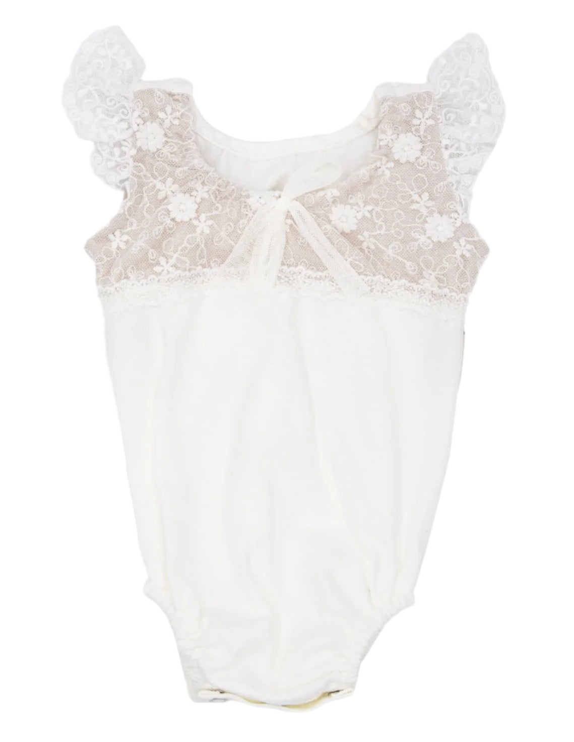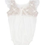 Short sleeve viscose lycra leotard with lined lace detail.