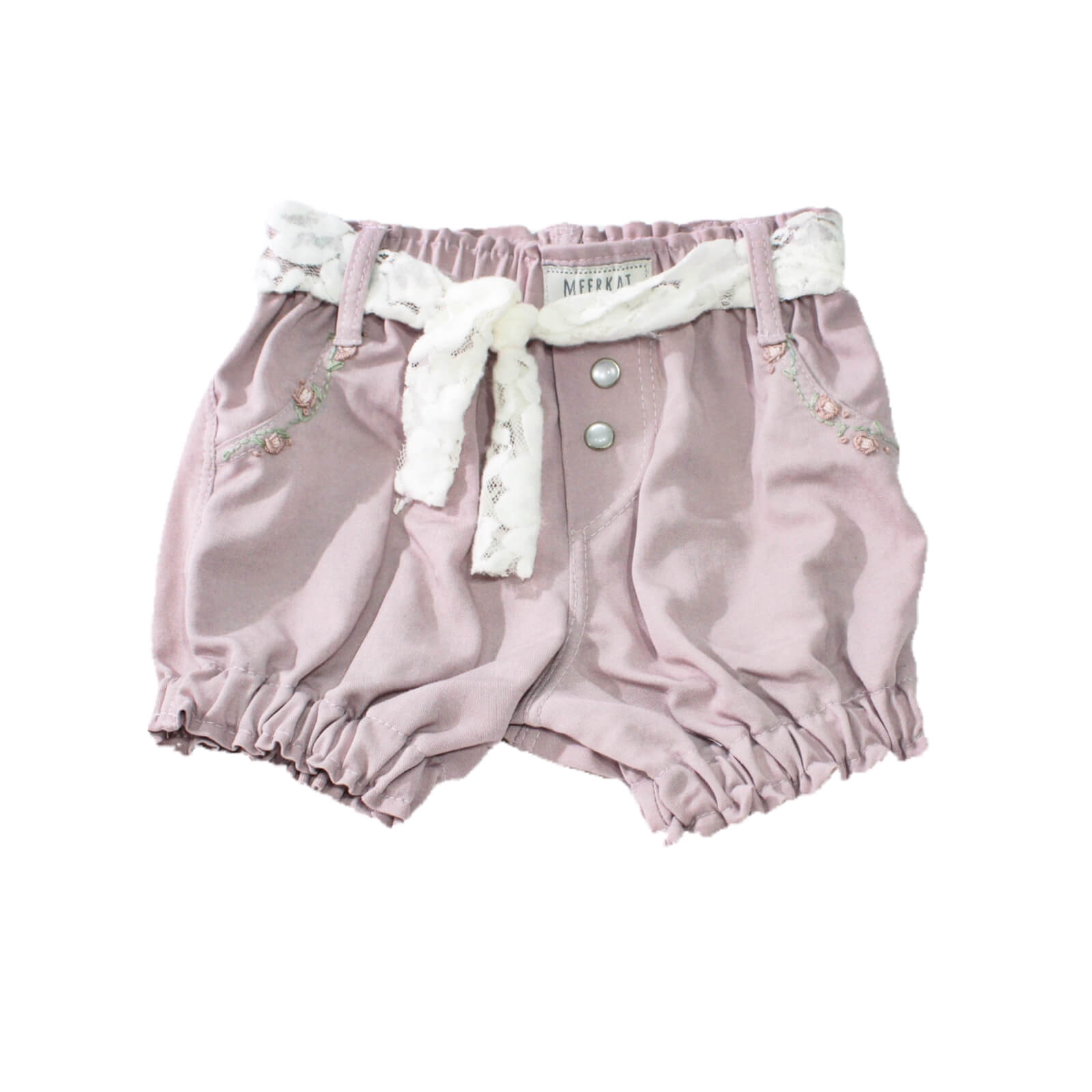 Stylish soft denim spandex short with elastic around the waist. Cute lace belt to in front.