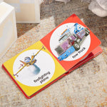 These brightly coloured, cardboard books have a dot on every page you poke. When you poke them, they make a satisfying popping sound- like you’re popping bubble wrap. But these beautiful books last a lot longer than bubble wrap and it’s very easy to pop.