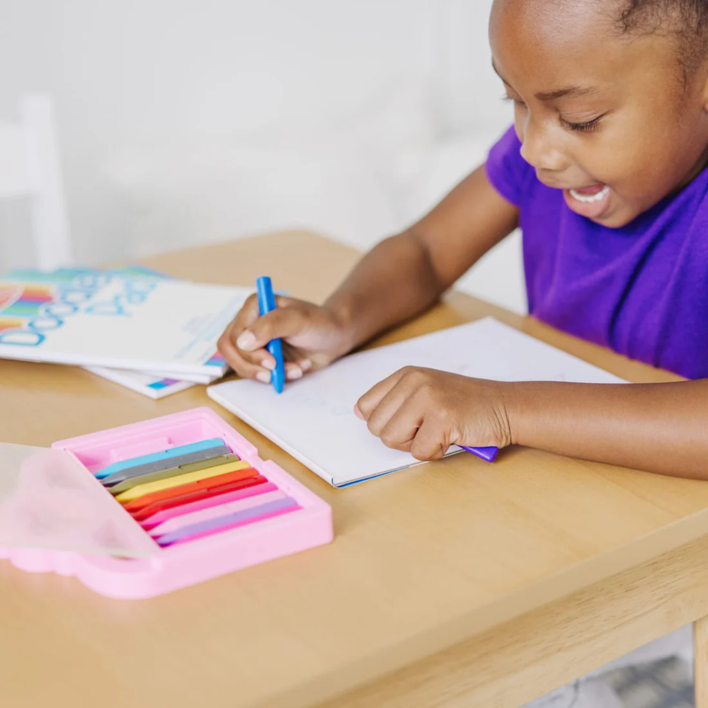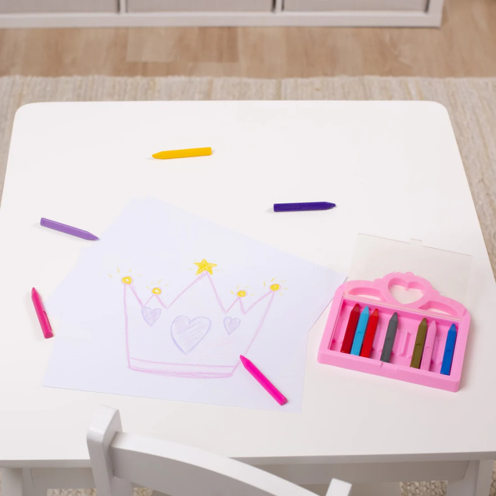 Designed to please every princess you know, this lovely, tiara-style carrying case is filled with 12 non-roll crayons. The triangular crayons are comfortable to hold and help develop the preferred grip for writing skills, all while Her Royal Highness beautifies her world with her colourful drawings and designs. All the crayons store neatly in their flip-top case. Part of Melissa & Doug's Art Essentials for kids--a thoughtful line of art supplies designed by parents and beloved by creative kids.