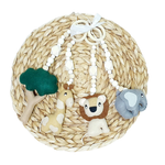 Tiny felt elements bring a bright sunshine with smiling rays, and a sweet little star with a gentle twinkle – all these handmade friends dangled playfully from the smooth, uncoated wooden ring. Each character, lovingly crafted and securely fastened, swayed and bobbed, ready to bring endless smiles and delightful sensory exploration to tiny hands and curious eyes. It was a perfect little world of soft textures and whimsical charm, a play gym dangle set made with love.