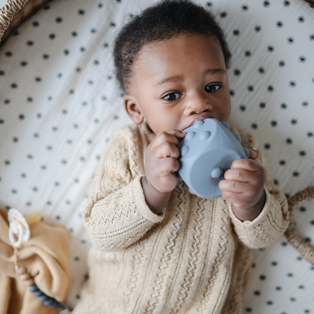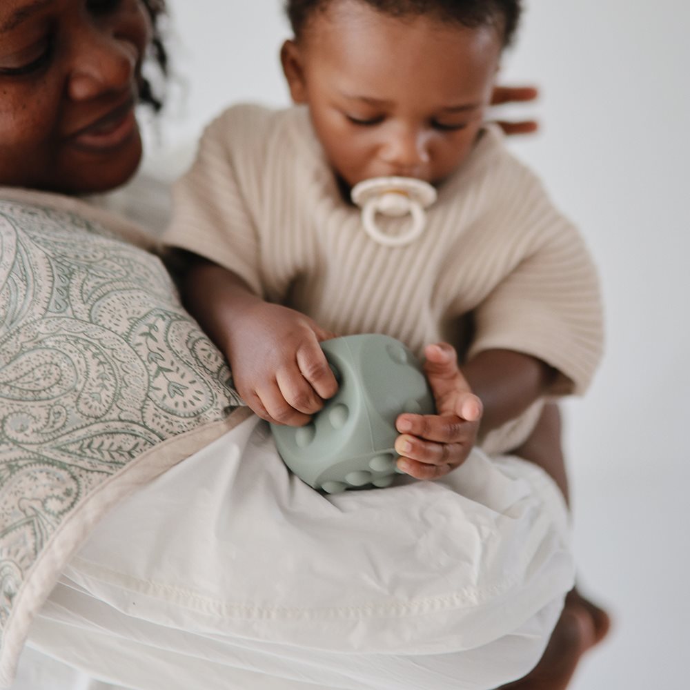 The Dice Press Toy is a fun sensory toy that combines learning and play. The toy features dots that can be pushed and popped. This encourages fine motor skill development while also providing a tool for teaching counting and simple arithmetic. It is made from food-grade silicone in soft colors and a simple design.