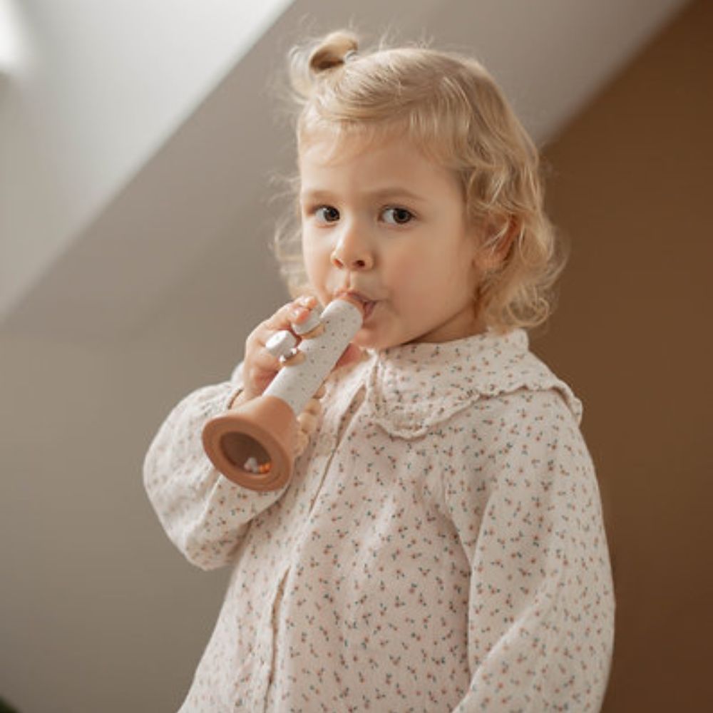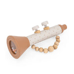 Inside the trumpet, tiny balls add a fun rattle effect, making it a multi-sensory musical experience. Designed with easy-to-grip wooden beads, it's perfectly sized for small hands.