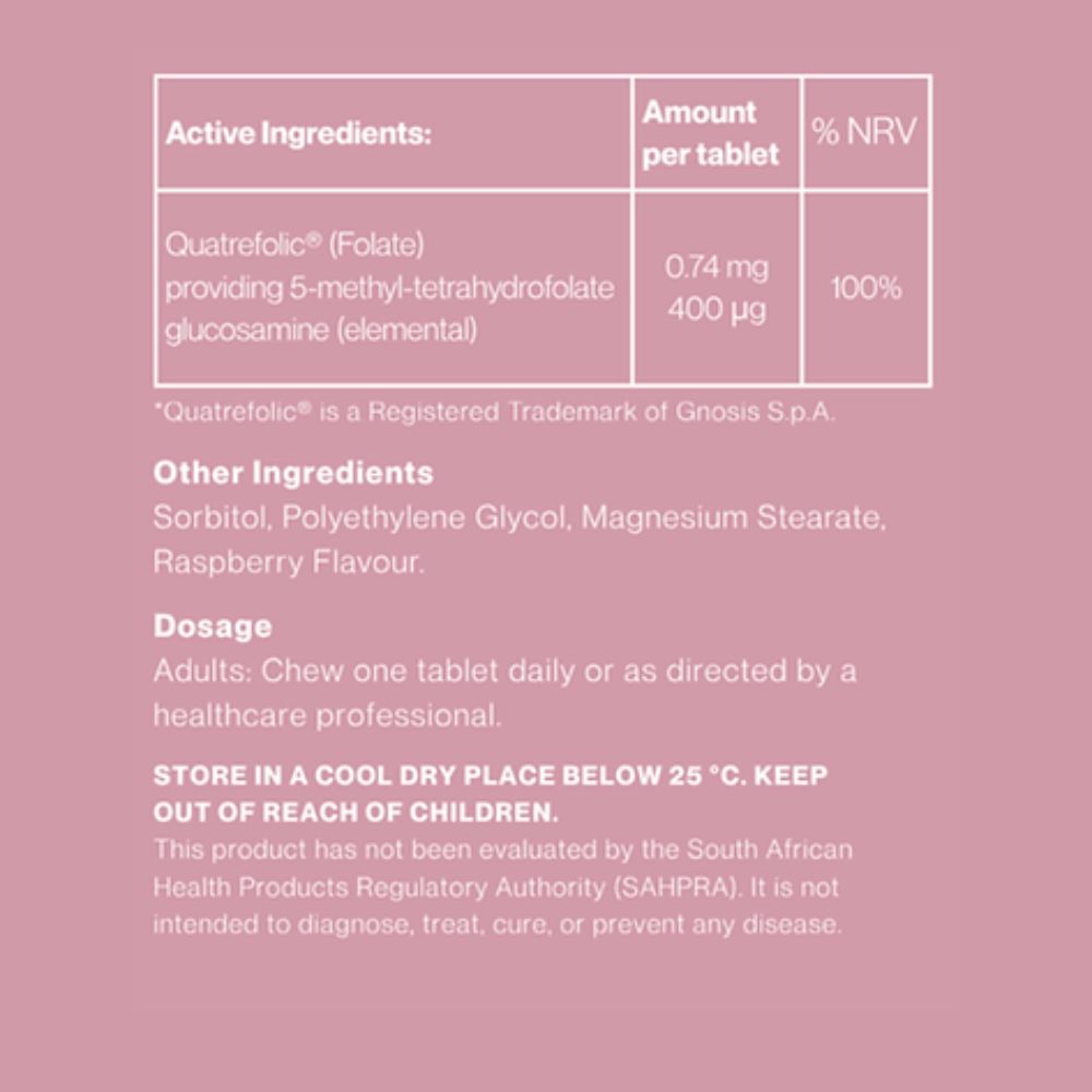 A highly bioavailable folate in a delicious chewable form and is sugar-free. Methylated Folate is pre-activated which means your body can recognize and use it immediately.