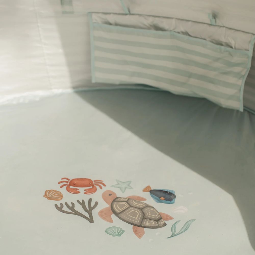 Hello Beach! This handy Little Dutch beach tent is perfect for sun, sea and beach all day long. Under the tent you can sit in the shade while you can still relax and play. Additionally, there is a handy compartment in the tent for extra storage and is easy to set up and fold down.