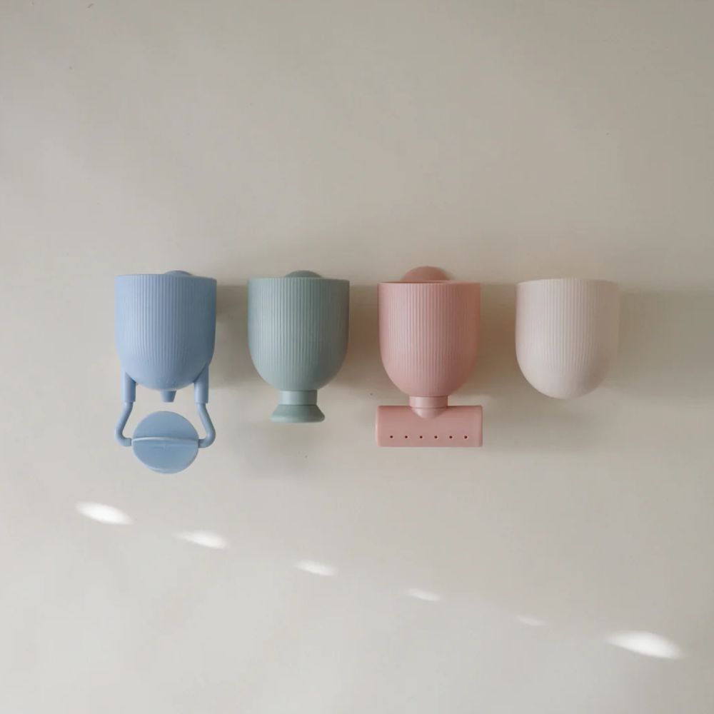 Make bath time an engaging adventure with our pour and play bath set toy, perfect for little hands and curious minds. Each cup features a silicone suction cup on the back, allowing for creative arrangements on tub walls to create a mesmerizing waterfall effect. With varied openings on the bottom for unique water flow patterns and one dedicated pour cup, this set encourages imaginative play and sensory exploration.