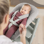 The Stokke® Tripp Trapp® Newborn Set is expertly crafted to promote bonding and interaction from the very first days of your baby's life. It is engineered to comfortably and ergonomically cradle your newborn, elevating them to the perfect table height. The design includes two angle adjustable positions and exceptional leg support, ensuring a snug, nest-like environment for your baby. This set facilitates meaningful eye contact and interaction during meal times and family gatherings, fostering strong familial bonds. Installation is safe and straightforward, with the Newborn Set easily attaching to and detaching from the Tripp Trapp® chair. The design incorporates red-green indicators for correct mounting, and a 5-point safety harness with protective shoulder pads for added security. The inclusion of a toy hanger keeps your baby entertained and aids in their motor skill development. This set is suitable for newborns up to 9kg and fits any Tripp Trapp® chair produced after May 2003.