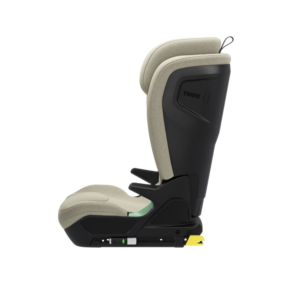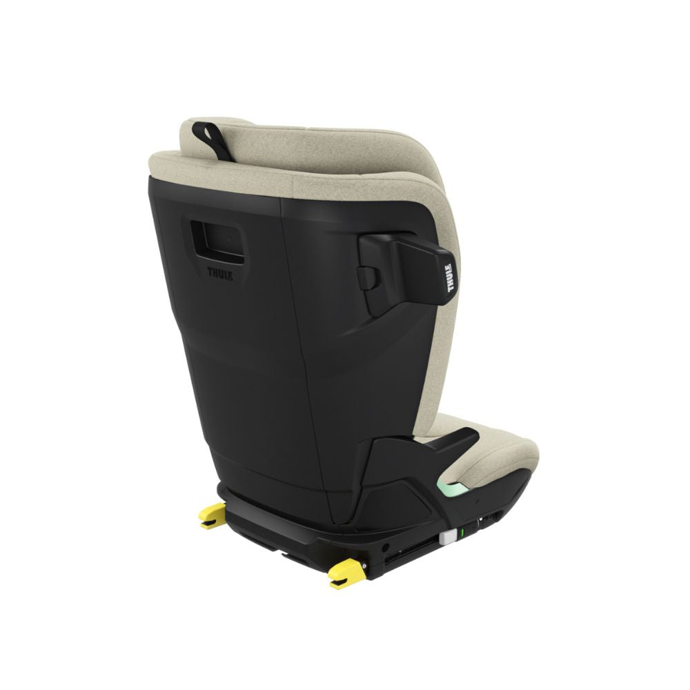 - Easy installation - The Thule Palm is designed for easy installation, featuring an intuitive belt guide system that helps ensure a secure fit every time. While the integrated ISOFIX hooks are specifically for fixing the seat in place, they contribute to overall stability. This setup gives parents peace of mind while encouraging kids to learn how to buckle up (with a final check from the caretaker, of course). The belt routing and guide system minimizes the risk of incorrect installation, ensuring safety and comfort. Additionally, the reclining backrest adjusts for added comfort, providing a better fit in any vehicle seat.
