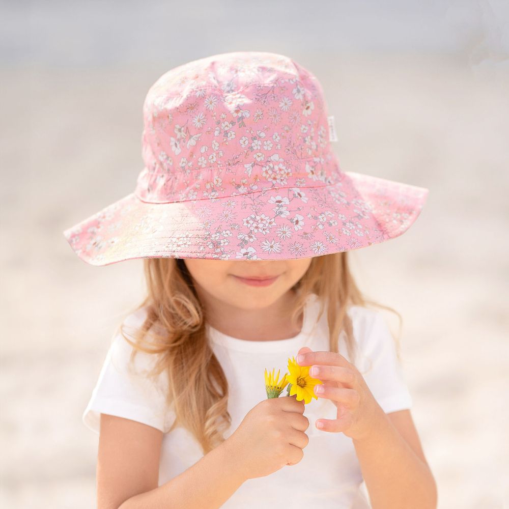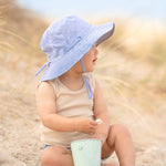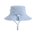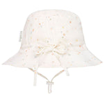 Toshi presents the classic Sunhat, ideal for children of all ages. The Toshi sunhat has a broad and well-structured brim. A UPF 50+ UV rating is provided for colourways. The head tie creates adjustable sizing, and the chin tie with a toggle secures the hat for ease of wear. A security release clasp on the chin tie is designed to enhance wearer safety. The classic Toshi Sunhat is crafted from the finest quality 100% cotton and is fully lined for additional comfort. An original and exclusive Toshi print design is featured.