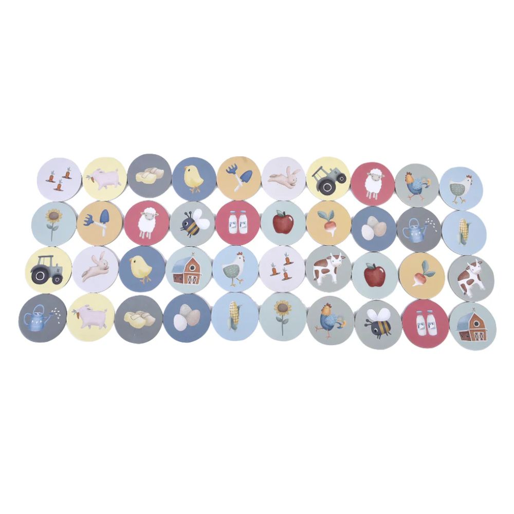 This Little Dutch farm-themed memory game can be played with one or more players. Each card shows a fun illustration of an animal or items that you can find on the farm. In this way, your child trains their memory and learns important skills, such as concentration and game development, in a playful way.