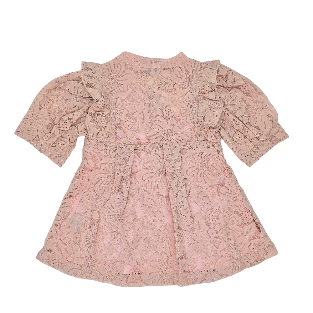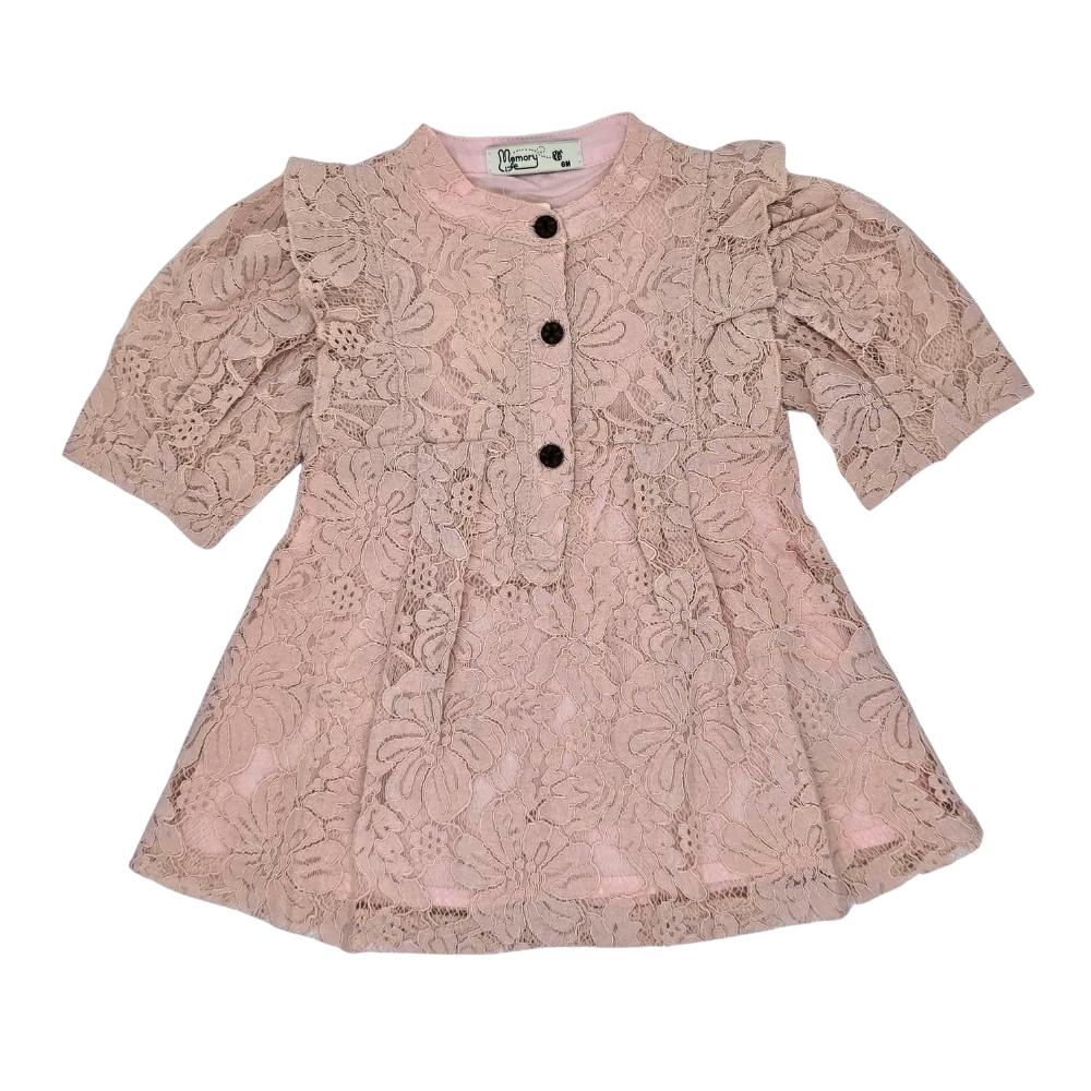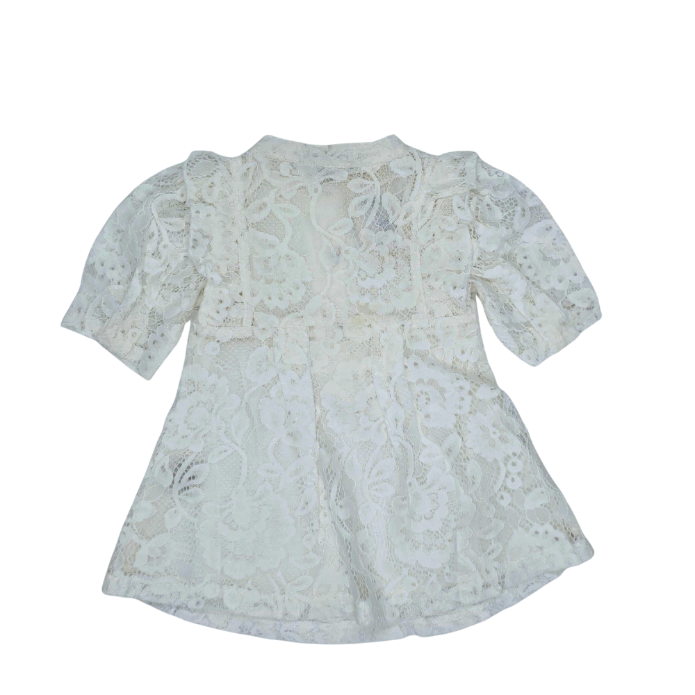 Girls Button Down 3/4 Sleeve Lace Dress