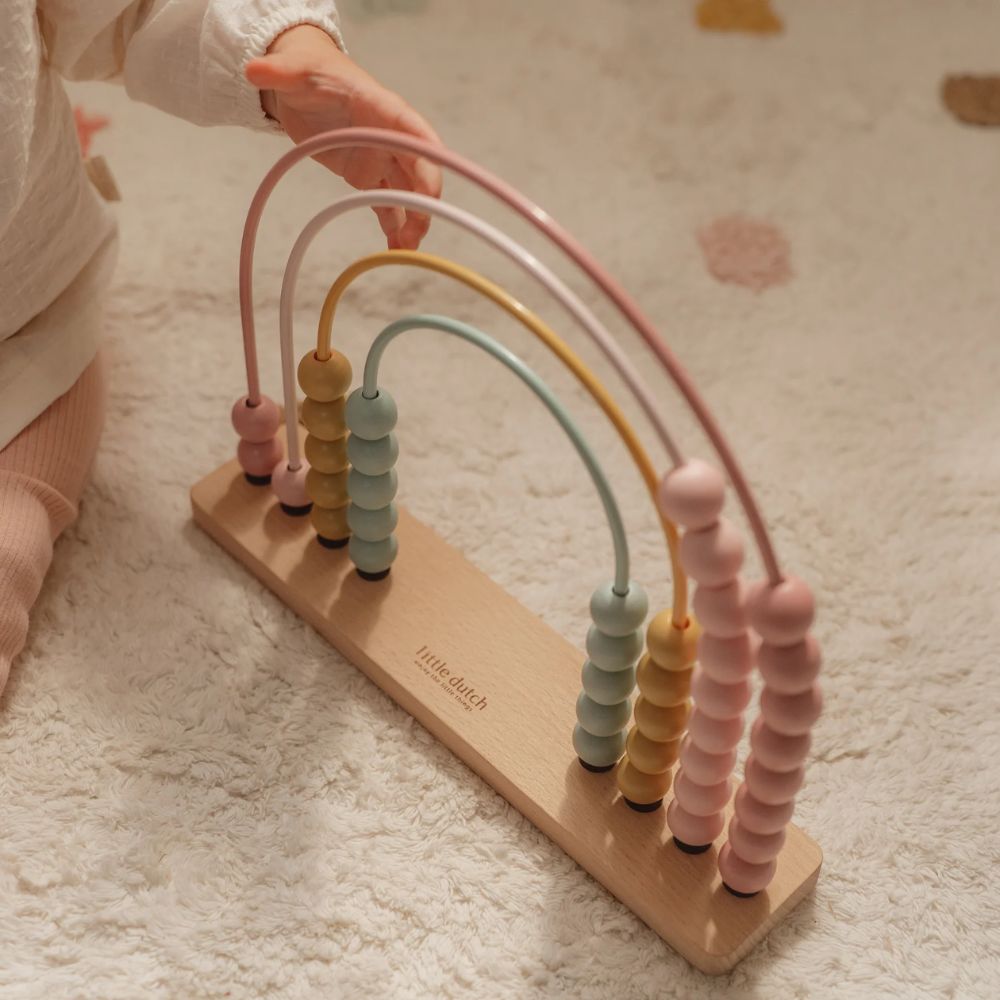 Count from 1 to 10, in all colours of the rainbow! This adorable Little Dutch rainbow-shaped abacus offers a delightful way to make counting fun. Slide the colourful beads from one side to the other, and explore the different hues of pink, yellow and green.