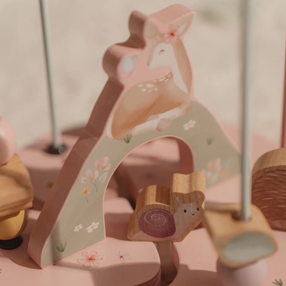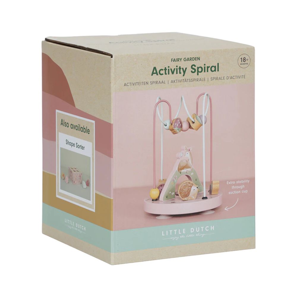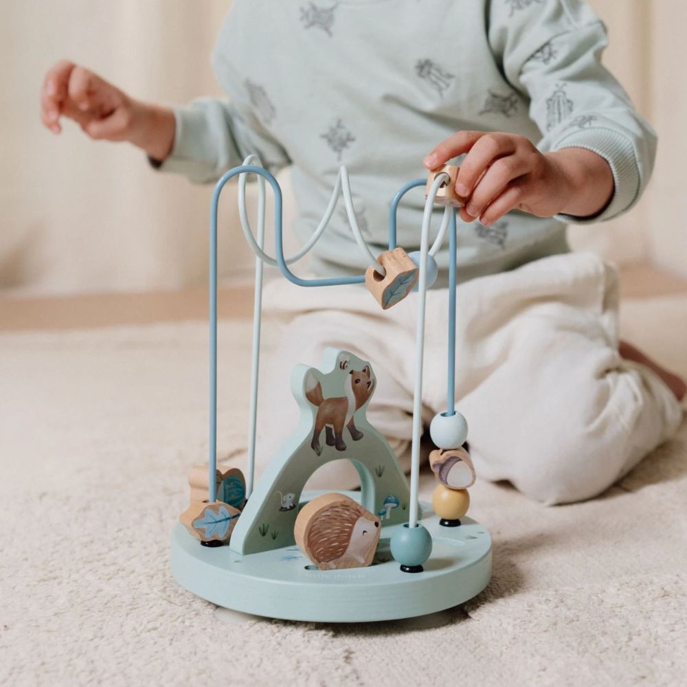 Move the beads from left to right into the enchanting world. Along the way you will meet the friendly fox, the hedgehog, the beetle and the little snail, who live and play in the forest. Slide them back and forth to discover the tasty acorns, lush leaves and pine cones that are hidden between the roots of the trees. Use your imagination and let the adventure begin! This wooden activity spiral offers an educational and enchanting experience for your child.
