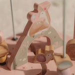 This wooden activity spiral in a farm theme offers an educational activity for your child. Transfer the cubes, pumpkin, hay bales and sheep from one side to the other! Playing fun guaranteed.