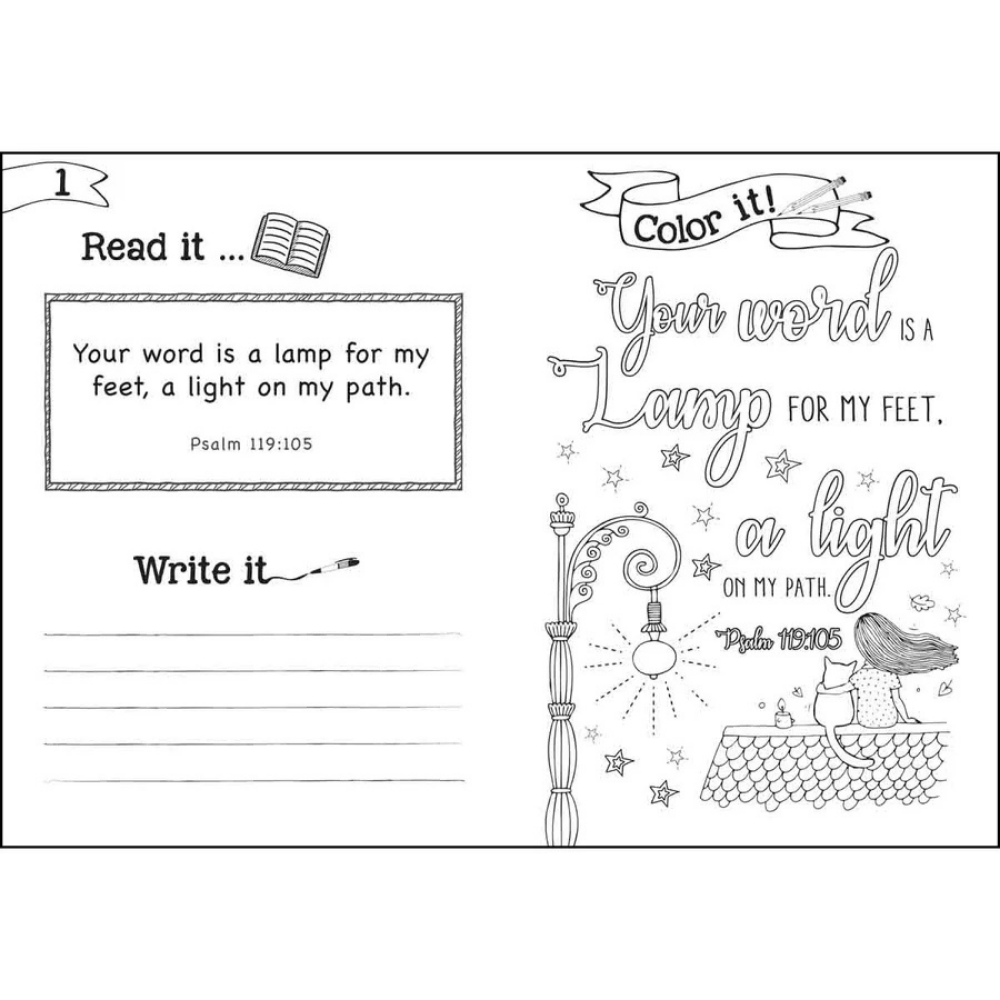 Children aged 5-8 will enjoy memorising 77 of the Bible’s key Scripture verses in this fun and engaging format. First they read the Scripture verse, then they write it out and then they color in the creatively designed Scripture verse. Repetition is the key to memorization and this easy-to-use tool will help parents and Sunday school teachers sow the seeds of Scripture into children’s hearts. Ideal for use in Sunday School and homeschooling Christian curriculum.