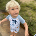 Sea Animal pattern full body suit with titanium colour neck and sleeves