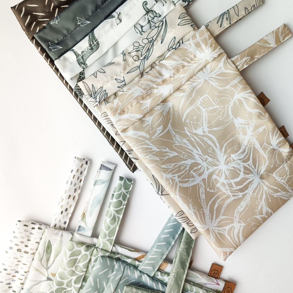 Our waterproof bags come in two different sizes, small and large. They are absolutely great for dirty nappies or cloth diapers! Mix and match a set or buy individually.